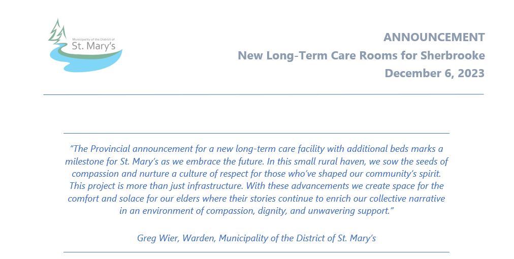 News release – Province Building More Long-Term Care Rooms: https://novascotia.ca/news/release/?id=20230111001