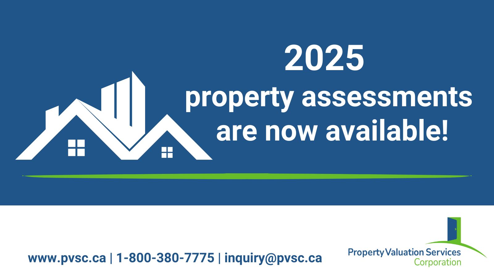 For inquiries about your 2025 Property Assessment Notice visit: www.pvsc.ca call: 1-800-380-7775 or email: This email address is being protected from spambots. You need JavaScript enabled to view it.