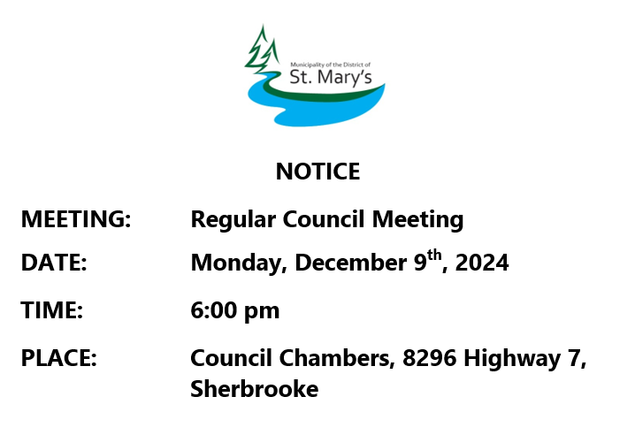 PLACE: Council Chambers, 8296 Highway 7, Sherbrooke