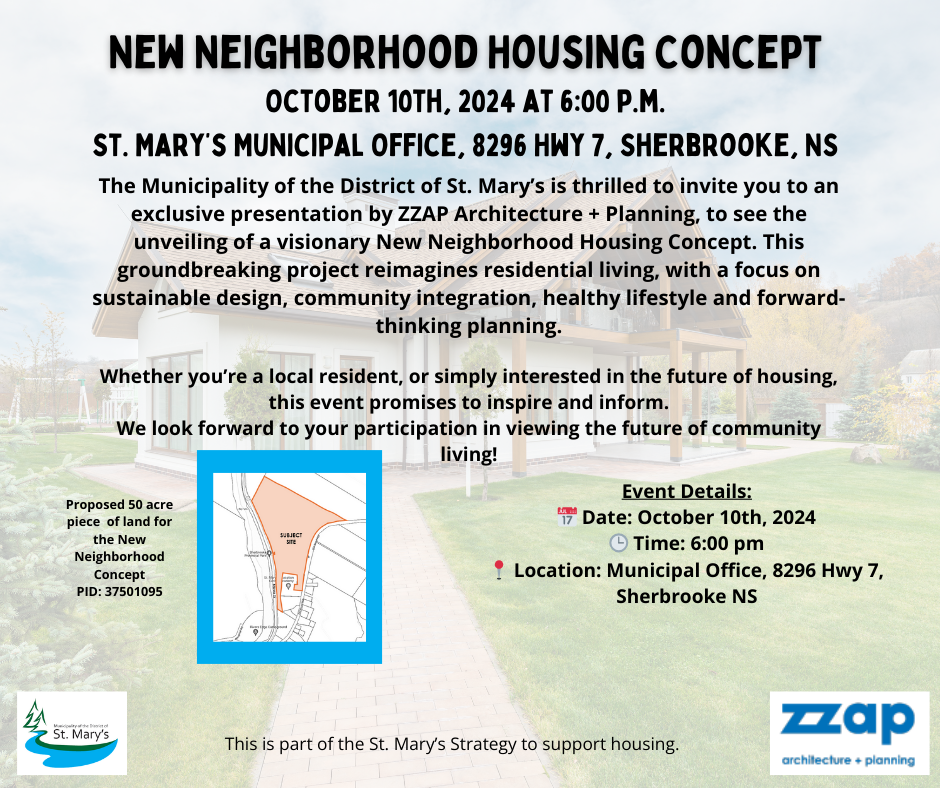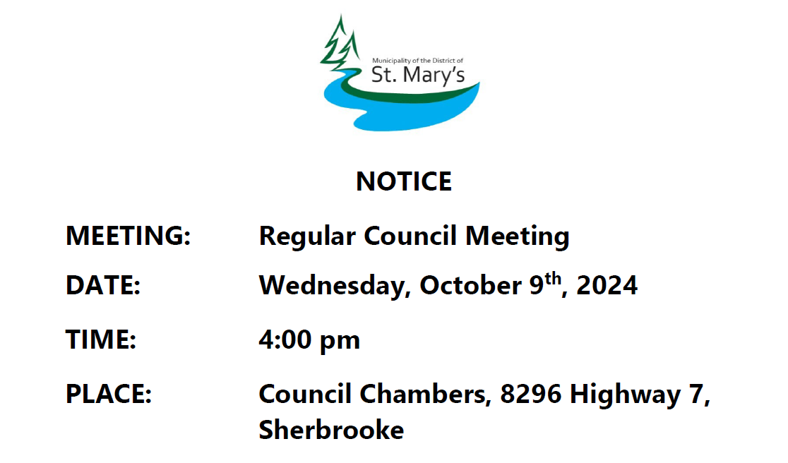 October 10th, 2024 at 6:00p.m. at the Municipal Administration Office building, 8296 Hwy 7, Sherbrooke, NS.