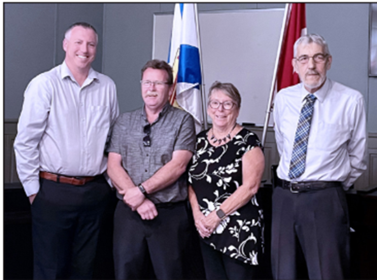 Picture Caption. From left to right: Guysborough-Tracadie MLA and Minister of Agriculture Greg Morrow (left) – with Town of Mulgrave Mayor Ron Chisholm, Municipality of the District of St. Mary’s Councillor Beulah Malloy and Municipality of the District of Guysborough Warden Vernon Pitts.