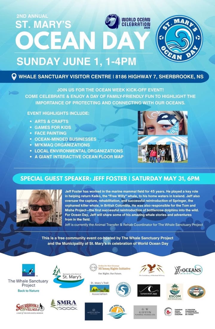 These events are a free community event and co-hosted by the Whale Sanctuary Project and the Municipality of the District of St. Mary's.
