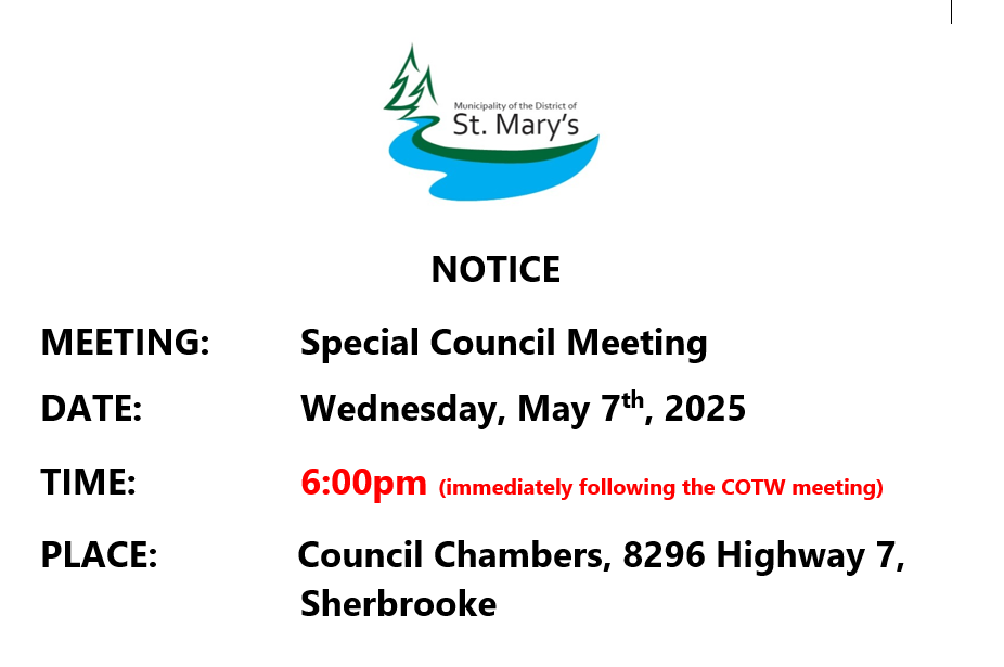 With spring upon us and fire restrictions now in place, the Municipality is please to restore the Brush Service at the Municipal Transfer Station starting May 1, 2025, to help residents safely manage their yard waste. The service is offered at no cost to residents. Only residents of St. Mary’s including year-round residents & seasonal residents may use this service. Residents must provide their residential civic address, name and phone number. This is a residential service only. Commercial brush will not be accepted. Vehicles with attached dump bodies are not eligible. For the month of May, the Transfer Station will be open on May 3, 5, 12, 17, 19, 26 and 31.