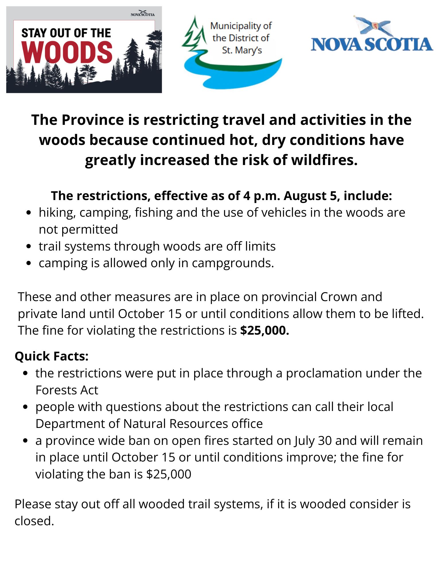 For more information visit: https://news.novascotia.ca/en/2025/08/05/travel-activities-woods-restricted-prevent-wildfires