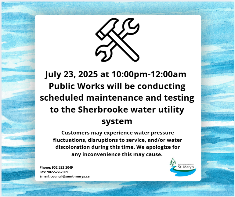 scheduled maintenance and testing to the Sherbrooke water utility system