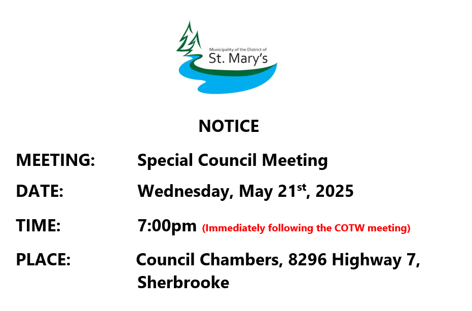 PLACE:              Council Chambers, 8296 Highway 7, Sherbrooke