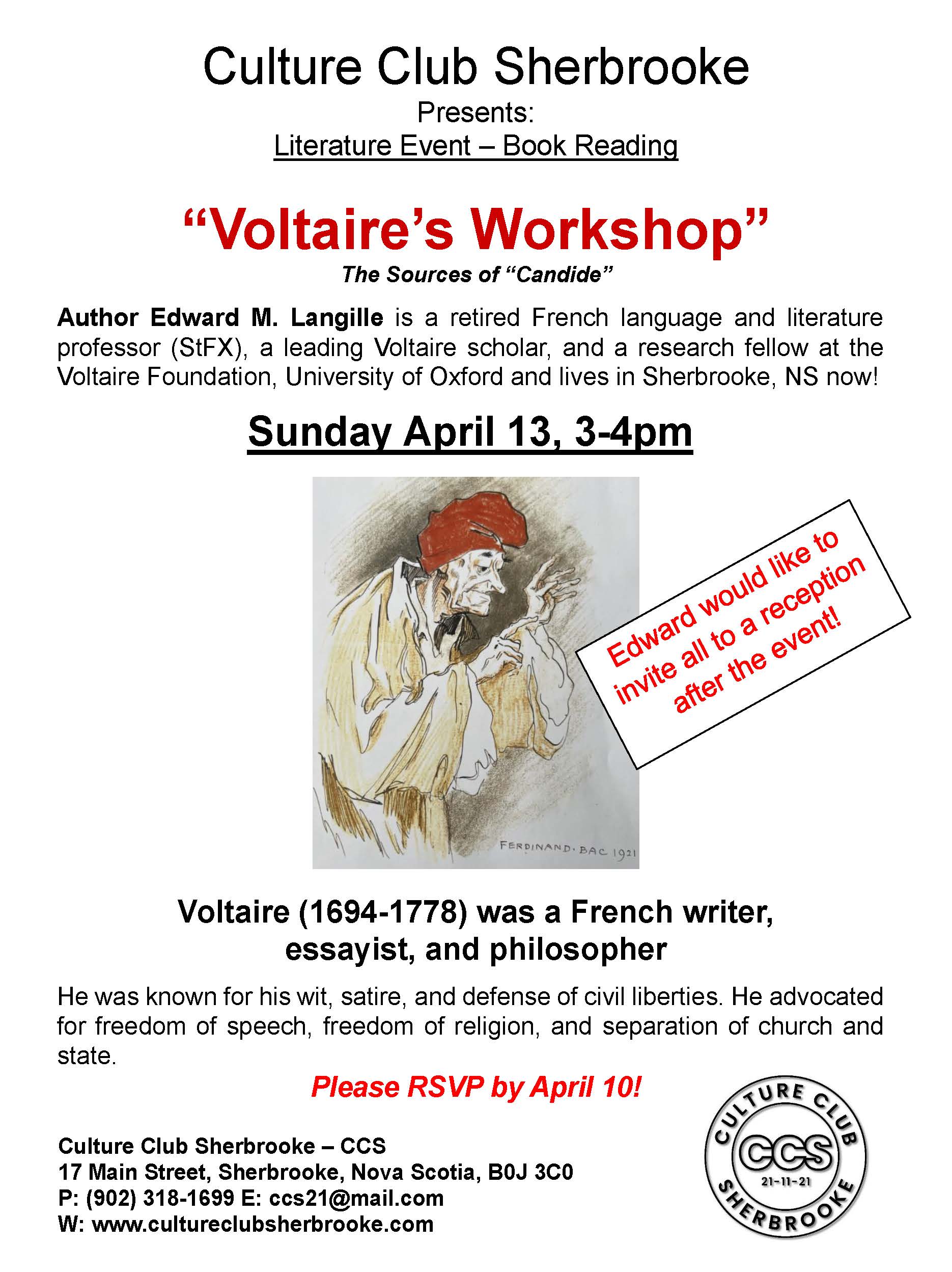 Author Edward M. Langille is a retired French language and literature professor (St.FX), a leading Voltaire scholar, and a research fellow at the Voltaire Foundation, University of Oxford and lives in Sherbrooke, NS now!