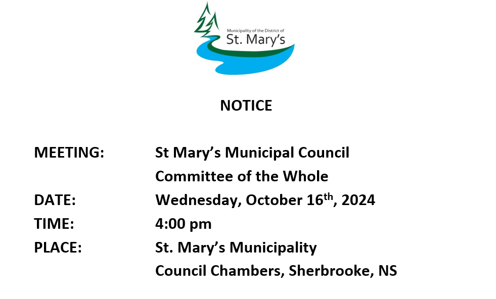 Residents of the Municipality of the District of St. Mary's are able to vote up until: October 19th, 2024 at 7:00 p.m.