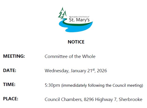 PLACE: Council Chambers, 8296 Highway 7, Sherbrooke