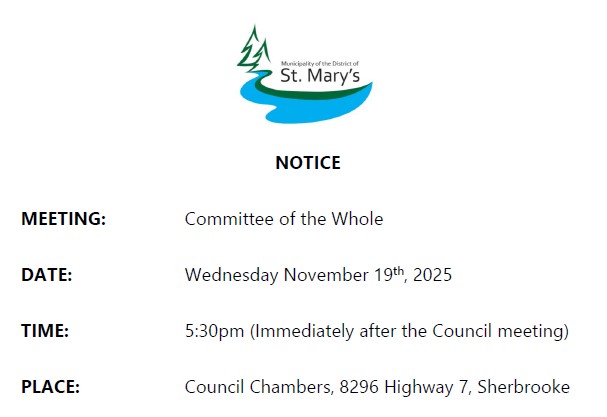 PLACE: Council Chambers, 8296 Highway 7, Sherbrooke