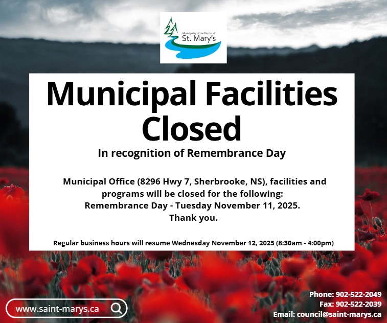 On behalf of the Municipality of the District of St Mary’s Council and staff we thank and appreciate all veterans for their bravery and the services they have provided for our country.